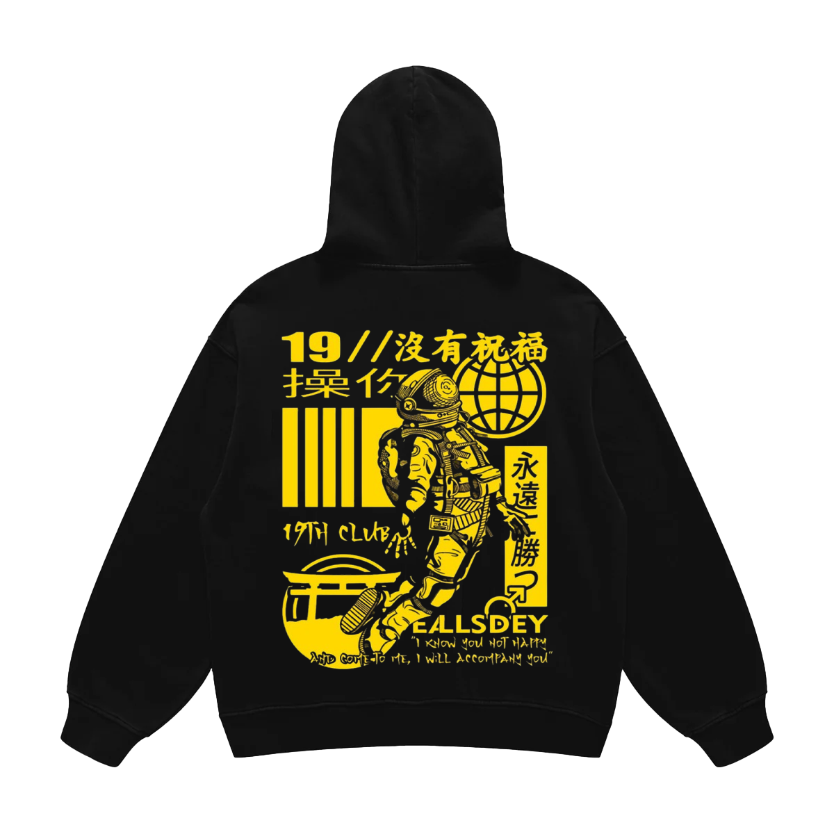 NUMBER NINETEEN HOODIE in Jet Black is crafted from luxury heavy-weight French terry cotton, with a soft blend tailored for comfortability. Constructed with ribbed hems and cuffs.